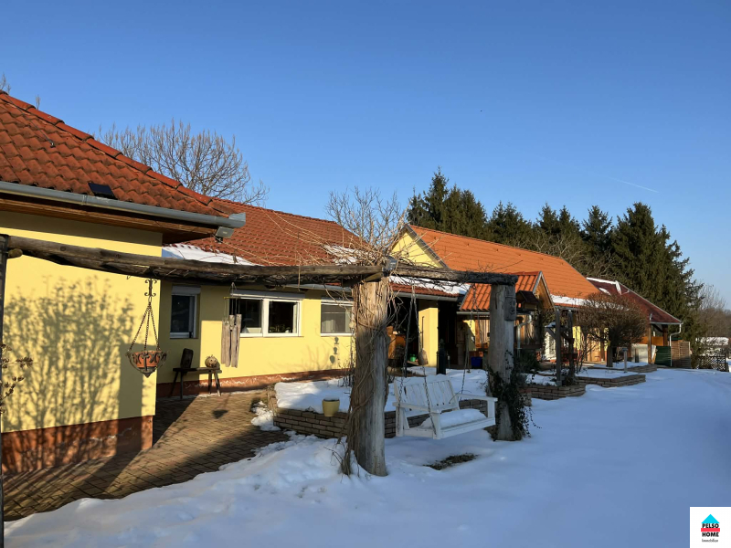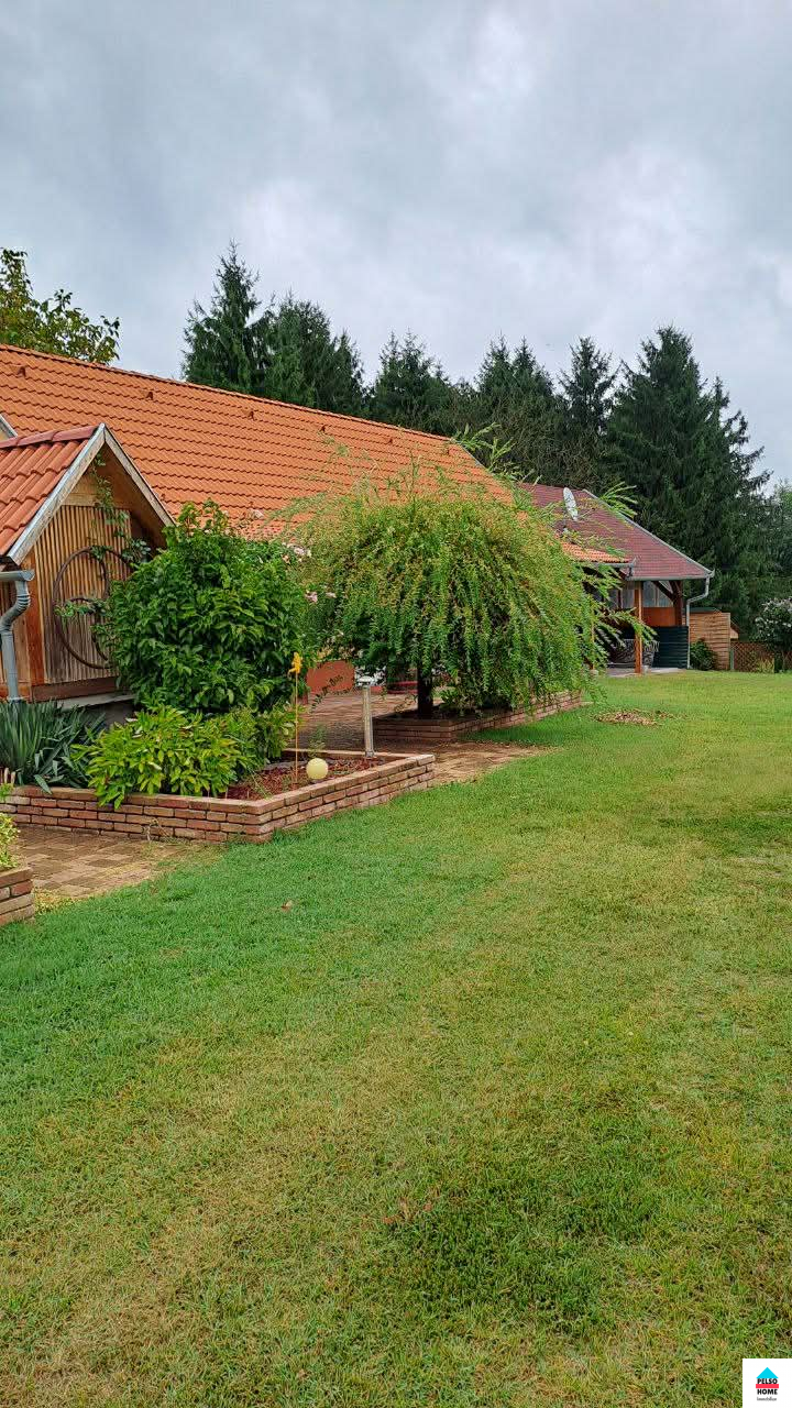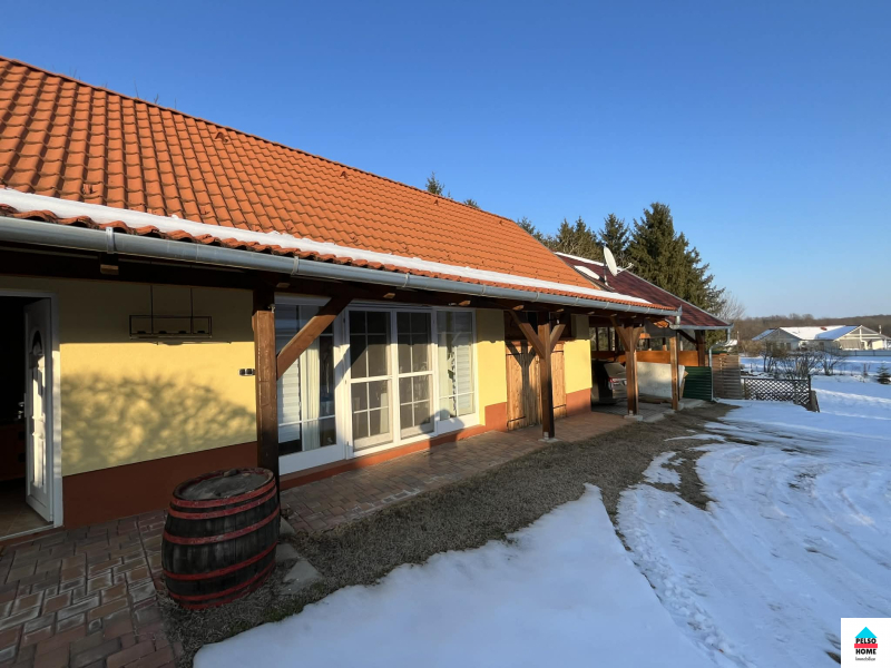 Im ruhigen Dorf Somogysimonyi, an der Grenze der Komitat Zala und Somogy, steht dieses wunderschön gepflegte und elegante Einfamilienhaus zum Verkauf. Die Wohnfläche beträgt 143 m² und ist in zwei separate Wohneinheiten aufgeteilt. Das Haupthaus verfügt über ein Wohnzimmer, moderne Einbauküche, Esszimmer, Schlafzimmer, Flur und ein Badezimmer (WC + Dusche). Das separate Gästeapartment bietet Badezimmer, eine offene Wohnküche und Schlafzimmer. Zum Anwesen gehören außerdem ein separater Keller, Werkstatt, Abstellräume sowie eine überdachte Terrasse mit Grill. Beheizt wird das Haus mit Gaszentralheizung, Kunststoff-Wärmedämmung, neuem Dach, 10 cm Außendämmung, Klimaanlage und hochwertiger Innen- und Außenverkleidung. Anschlüsse: Wasser, Gas, Strom, Abwasser, Internet etc. Das Grundstück (2163 m²) ist großzügig geschnitten und komplett umzäunt! Überdachter Parkplatz für vier Autos, 8000-Liter-Regenwassertank (!), Brunnen, separate 20 m² große Werkstatt – und all das mit einer traumhaften Aussicht! Idyllisches Dorfleben, Sicherheit, Ruhe… Besichtigung nur nach vorheriger Absprache! Weitere Informationen finden Sie hier!