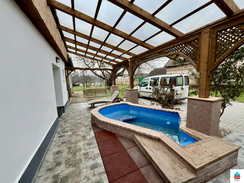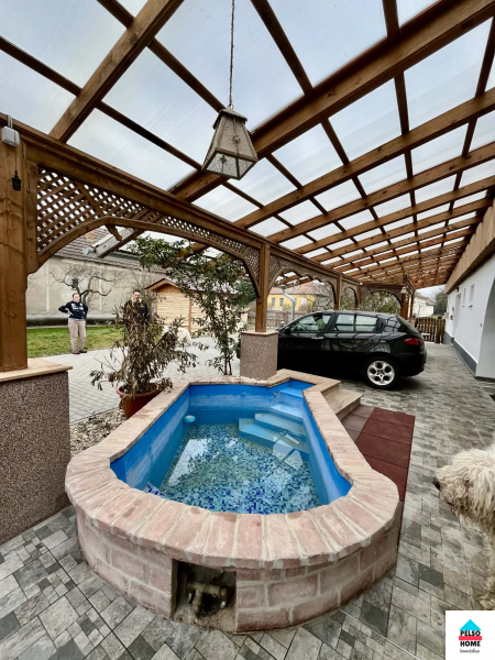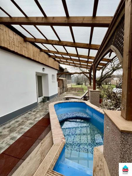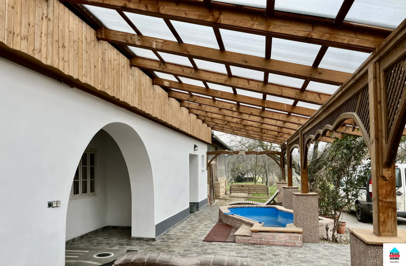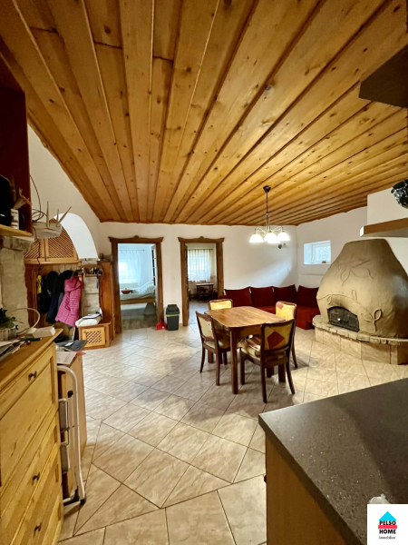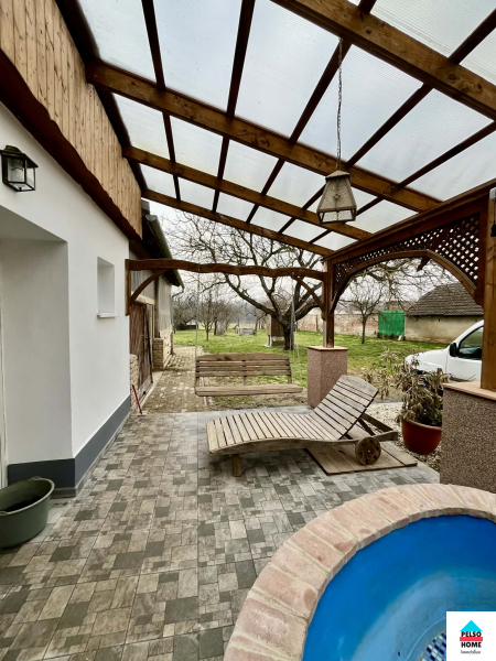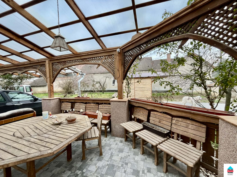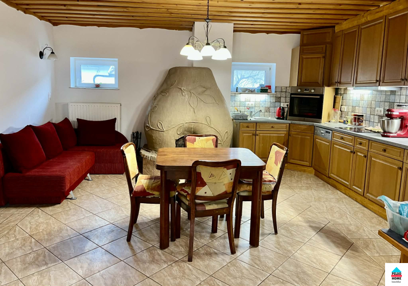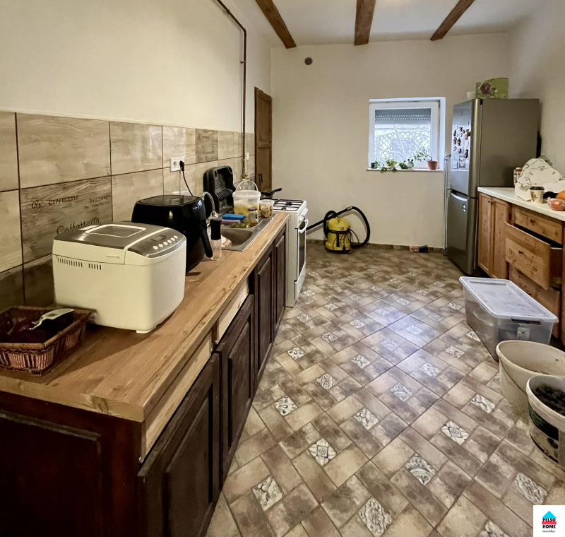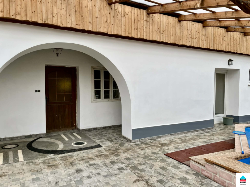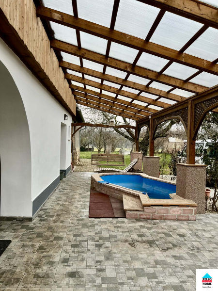 Az épület közel száz éves,50-55cm-es(!) tömör tégla falazattal épült és tökéletes statikai és műszaki állapotban van.A kb 40m2-es fedett teraszról a főbejáraton belépve a hatalmas Nappali és felszerelt amerikai konyha fogad minket aminek disze egy tradicionális búbos kemence. Három különálló hálószoba, vendég wc, mosókonyha, közlekedő. nagy fürdőszoba káddal, zuhannyal és WC, spájz. Külön lakrészben kapott helyet egy nyári konyha, iroda/szoba és egy előkészített fürdőszoba ami külön vendégapartmannak is tökéletes, külön bejárattal!